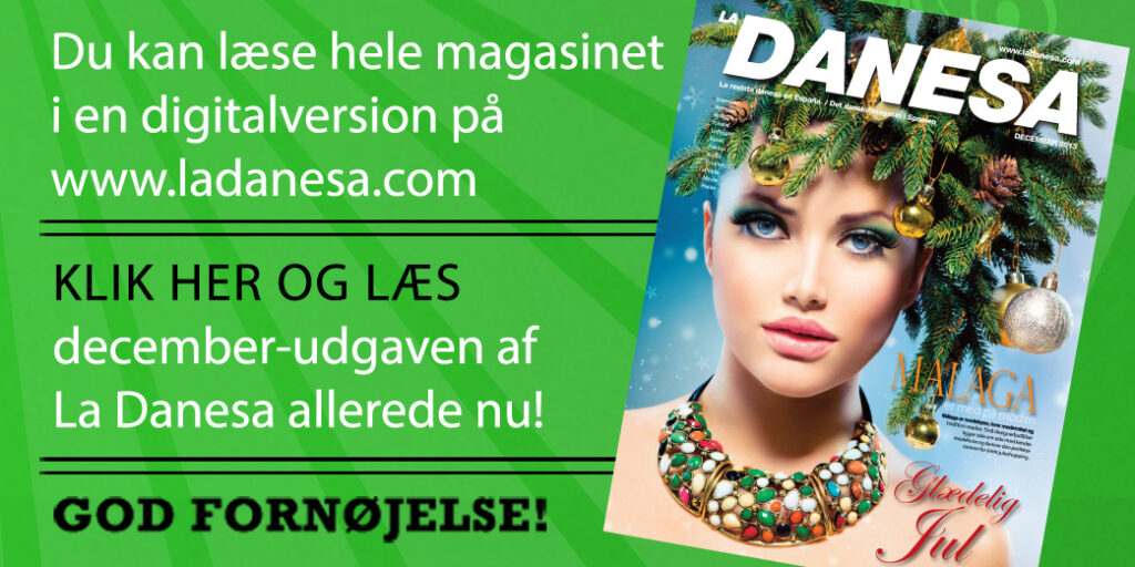 I denne udgave af La Danesa kan du læse om: Nostalgiske nyheder hos BoConcept Kvindelig topchef: Vi skal ikke bare passe ind i mændenes verden Nyd Málagas julestemning Málaga er med på moden Ny energireform bremser udviklingen af vedvarende energi i Spanien Der hvor kragerne vender Hvorfor dit og hvorfor dat? Frygten for det […]