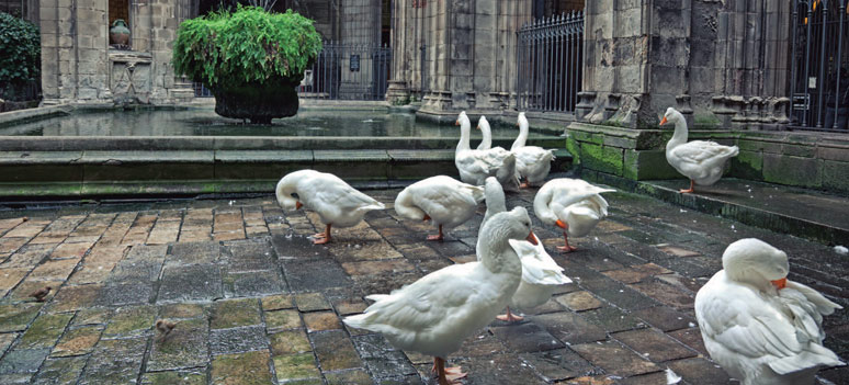 13 gæs ved Barcelonas katedral