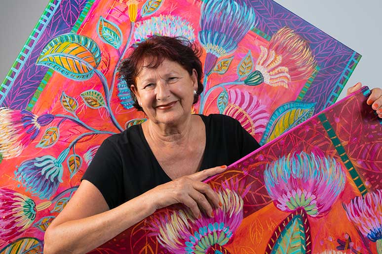 Birgitte Mellentin udstiller sine vidunderlige blomstermalerier