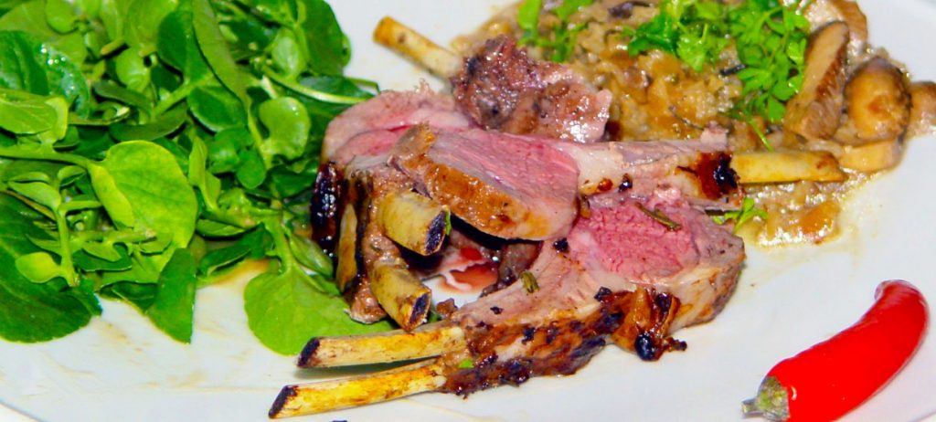 Laksetatar 400 g fersk laks 4 forårsløg 1 tsk. salt Befri laksen for ben, skin og eventuelt fedt, og skær den i meget små stykker. Bland laksen med den finthakkede forårsløg og pynt med en klat cremefraiche og eventuelt en skefuld kaviar. Lammekoteletter med svamperisotto Lammekoteletterne: 1,6 kg lammeryg 2 tsk. olivenolie Saften af en […]