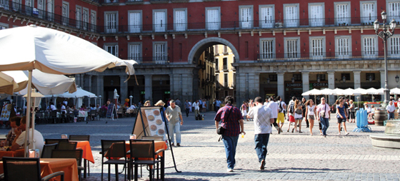 Få skridt fra det gamle rådhus ligger byens største plads, Plaza Mayor. Den første bygning her blev opført helt tilbage i 1590 og var et bageri.