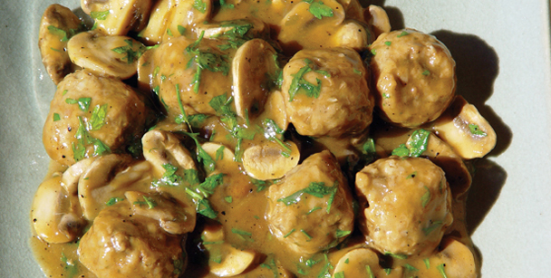 Albónigas de Jabalí con Champiñones (Kødboller af Vildsvin med Champignoner)
