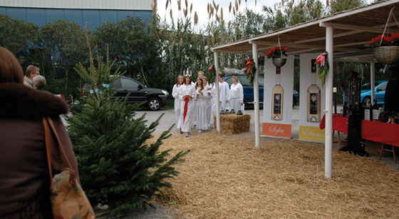 Julemarkedet får besøg af julemanden og hans snekanon, som sikrer hvid jul – og så kommer den svenske skoles yndige Lucia-piger og synger for os. Der er slikposer til børnene, som også kan komme i julestemning i den særlige børne-aktivitetsbod, hvor der klpiies og klistres.