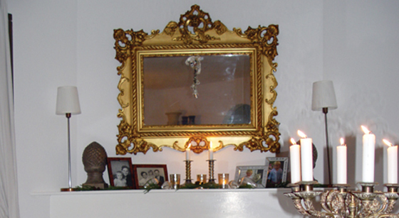 Miks ny og gammelt. Lav små opstillinger på fade og MASSER af tændte stearinlys.
