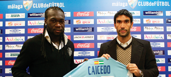 Med sit lange, sorte afrohår og hjulede ben, præsenterede Málaga CF mandag den 11. januar den bomstærke Caicedo som spilleren, der sammen med Obinna fra Nigeria skal gøre klubbens angreb mere giftigt og uregerligt for modstanderne i de krævende bestræbelser for overlevelse i La Liga.