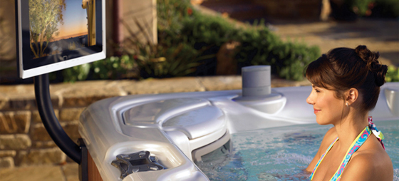 ”HotSpring introducerer også et moderne musiksystem, hvor man har pop-up højttalere og forstærker bygget ind i spa’en – og sin personlige iPod linket op. Derudover kan man få et vejrbestandigt fjernsyn koblet til, som sidder på siden af spa’en. Som de siger i USA: ”Sit back, relax and be entertained”. Så fås det ikke meget bedre,” fortæller Anja Kielskov fra Aquapool Spa.