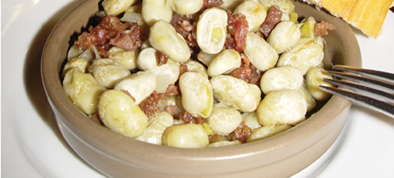 Her serveres Habas con jamón, hestebønner med lufttørret skinke.