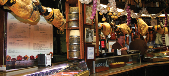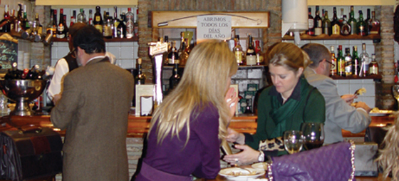 Det er nok byens mest kendte, hvilket skyldes nogle vidunderlige tapas og den traditionelle dekoration med vintønder, feria-plakater og tyrefægtermotiver.