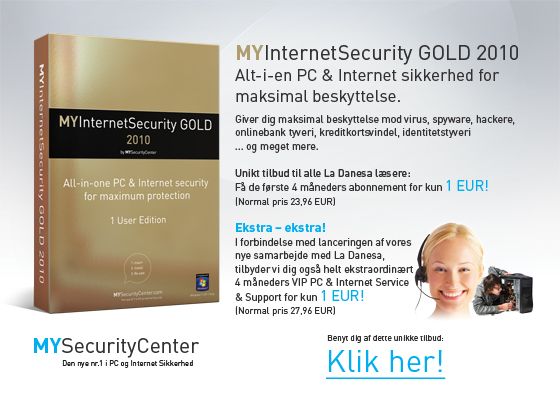 At vi tager fat på det netop nu skyldes, at vi endelig har fundet den rigtige samarbejdspartner til projekt ”La Danesa Online for dig”. La Danesa indleder nemlig et samarbejde med et af de største firmaer indenfor PC- og Internetsikkerhed for private brugere, MYSecurityCenter.