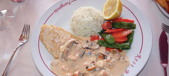 Selv fik jeg fornøjelsen af at prøve Ensalada Bahía som forret, der er en af de mest farverige salater, jeg har lagt smagsløg til, med sine mange ingredienser, der tæller tun, palmeskud, majs, cherrytomater, rødbede, avokado, agurk, gulerødder og meget, meget mere. Til hovedret prøvede jeg Brocheta de Pavo con guarnición, der bestod af grillspyd med kalkunkød, overskårne majskolber, løg og peberfrugt samt friske grøntsager stegt i olie. Denne ret anbefales til personer med en stor appetit eller som en romantisk hovedret for to personer, da der er mad nok til fire dage. Derudover prøvede jeg Lenguado Bahía, som er en lettere ret også med friskstegte grøntsager, ris og sauce med champignoner, muslinger og rejer. To af et utal af retter på menuen, der uden tvivl tiltaler alle med sin store variation.
