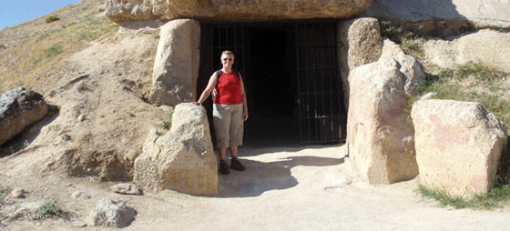 Den største dolmen hedder Menga, og den ser vi først. Når man står inde i Menga kan man ikke undgå at blive overrasket over rummets størrelse og konstruktion. Rummet er 27,50 m. langt og 6 m. på det bredeste sted. Der er kæmpestore "vægplader" på alle sider og i midten er der store monolitter, der bærer de enorme loftssten. I sandhed et imponerende sted. Menga har sandsynligvis været brugt til ceremonier og måske begravelser, men hvad man egentlig lavede herinde er og bliver et mysterium. Men ét er sikkert: stendysserne er blevet bygget af mennesker med en høj kultur, hvilket også afspejles af den broncesol, der er fundet og som kan ses ved soluret inde på dolmenområdet.