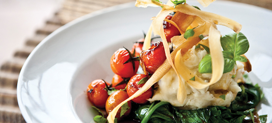 Yucca: Yucca puré med Pedro Ximenez sauce, spinat og cherrytomater