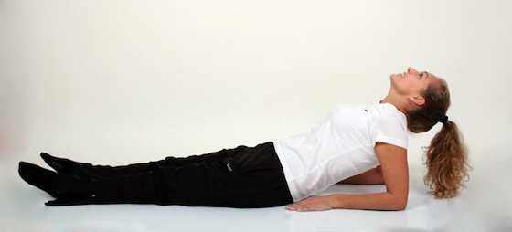 1. Læg dig fladt på ryggen med strakte ben.