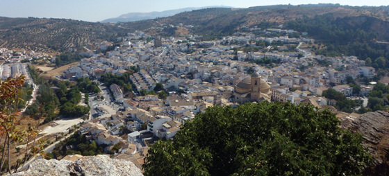 Næste morgen kører vi lidt syd for byen, for vi vil gerne bestige El Hachuelo, som er et lille bjerg, der ligger tæt på byen. Et par km. syd for byen drejer vi til højre hvor der står: Camino del Hachuelo. Vi kører nu opad og til højre hvor der står: Cruz del Hachuelo. Nu følger vi vejen indtil der en lille vigeplads, hvor vi kan parkere. Vi er nu ganske tæt på toppen, og det tager kun små 20 min. at nå derop til fods. Der er ikke nogen egentlig sti, men det er ikke svært at gå i det visne græs. Oppe på toppen er udsigten ned over byen og ud over landskabet helt fantastisk, så vi var glade for denne lille ”bjergbestigning”.