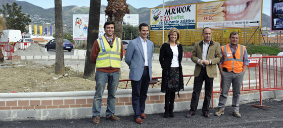 Fuengirolas borgmester, flankeret af rådgivere poserer her efter at have inspiceret arbejdet på en rundkørsel.