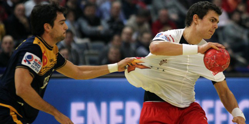 Et glimt fra semifinalekampen mellem Spanien og Danmark, som sidstnævnte som bekendt vandt 25 – 24.