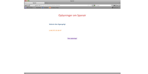 Spanairs hjemmeside er lukket, men det meddeles, at man kan ringe til et servicekontor.