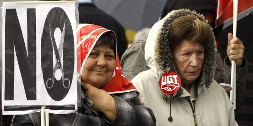 Tusindvis af mennesker demonstrerede tirsdag den 1. maj på gaderne overalt i Spanien. Den største protest fandt sted i Madrid, hvor fagforeningerne vurderede, at 100.000 demonstranter var mødt op for at protestere mod regeringens (PP) omfattende nedskæringer og arbejdskraftreformer.