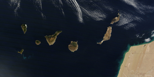 De Kanariske Øer set fra rummet; El Hierro nederst til venstre.