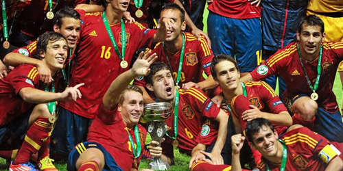 Med en knusende 4-0-sejr over Italien genvandt Spanien søndag aften europamesterskabet i fodbold. Målene blev sat ind af David Silva, Jordi Alba, Fernando Torres og Juan Mata. Italienerne lagde ellers godt ud på Det Olympiske Stadion i Kiev, men langsomt satte de forsvarede mestre sig på kampen. Efter et kvarters spil blev overtaget vekslet til en føring, da Fàbregas kom til baglinjen og trods hårdt pres fra Chiellini fik sendt bolden ind i hovedet på Silva, der på fornem vis fik drejet bolden i kassen uden chance for Buffon. Kort før pausen gjorde den kommende Barcelona-back Jordi Alba det til 2-0 efter at være kommet alene igennem med Buffon. Fem minutter inde i 2. halvleg fik de blåblusede deres største chance, da indskiftede Di Natale pludselig fik frit skud tæt under Casillas’ mål. La Roja-kaptajnen reddede dog det svage skud. Med godt en halv time igen måtte netop indskiftede Thiago Motta udgå, og fordi han havde været støvlelandets tredje og dermed sidste udskiftning, var italienerne nødsaget til at spille resten af kampen med en mand i undertal. Det udnyttede Spanien nådesløst, da Chelsea-indskifterne Torres og Mata cementerede den overlegne spanske sejr.