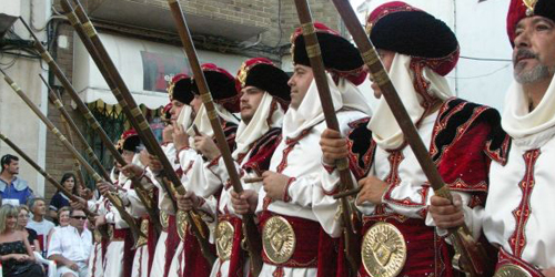 Det er den traditionelle Fiesta de Moros y Cristianos (maurer og kristne), der markerer slutningen på den mauriske okkupation af Spanien. Disse slag opføres som teaterstykker med både kampe og danse, og deltagere på begge sider er klædt ud som dengang i 1400-tallet.