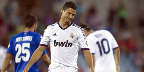 Frustrationen står tydeligt malet i Ronaldos ansigt. Med nederlaget til Getafe har Real Madrid fået en elendig sæsonstart.