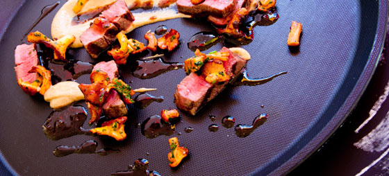 Oksemørbrad med svampepure og kantareller
