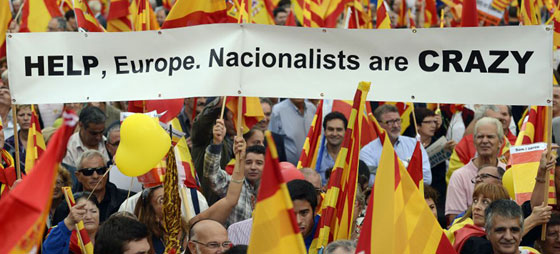 ”Vi ønsker, at Artur Mas og resten af separatisterne tager vores budskab til sig,” lyder det fra Alicia Sánchez-Camacho, leder af det catalanske Partido Popular. Antallet af demonstranter var stort, men varierer alt efter, hvem man spørger. Ifølge arrangøren var der omkring 100.000 demonstranter på pladsen, mens det catalanske politi meddelte, at der kun var omkring 6.000 demonstranter på Plaza de Cataluña.