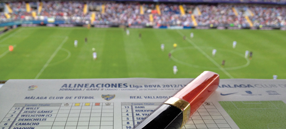 Da jeg finder pressetribunen, får sat mig ned og lagt blok og blyant frem, føler jeg mig en smule malplaceret blandt talrige, mandlige sportsjournalister. Klapsæderne er stadigvæk blå på tribunerne, og fuglefrøene har endnu ikke sat deres spor. Stadionet er stort set tomt. Inden jeg får set mig om, lyder startfløjten, og La Liga-kampen mellem Málaga CF og Real Valladolid går i gang. Tilskuerne har indtaget deres pladser, og La Rosaleda er begyndt at ligne sig selv. Mændene på hver side af mig har et helt særligt, intenst udtryk, mens de følger kampen. Jeg fører akavet hånden op til hagen, og prøver ihærdigt at se ligeså koncentreret, nærmest sur ud. Skiftevis krydser jeg benene, mens mine tanker er et andet sted end på midtbanen. I min øresnegl overhører jeg en samtale om Eliseau, Málagas nummer 18. Hvad er der så specielt med ham Eli-et-eller-andet? Jeg bevæger mig ind i fodboldverdenen, smører læberne med gloss og tager sportsjournalistbrillerne på. Jeg, som kvinde, lægger så sandelig ikke kun mærke til bold, ben og balder.