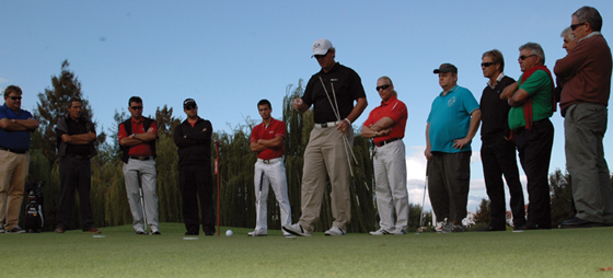 Søndag d. 28 oktober lykkedes det Lauro Golf at få den kendte puttemester Mark Sweeney til Costa del Sol. AIM Point Technology er blevet godkendt af PGA Tour. Alle golfspillere ved, hvor vigtigt det er at læse green rigtigt samt finde den rette hastighed. Mark Sweeney havde inviteret pro’er fra Costa del Sols golfbaner bl.a. Juan Quiros fra La Cañada, Paco Natoli fra Baviera og Ricardo Jiménez fra Finca Cortesín. Kontakt din personlige pro på din medlemsbane og du vil hurtigt konstatere, at du vil kunne forbedre dit handicap.