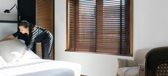Der er ingen skilte på væggene, der minder om, at jeg befinder mig på et hotel, hvilket er helt i tråd med ”det her er dit hjem”-ånden. Det primære, man har ønsket at hotellet skulle udstråle, er fred og ro. Derfor er linjerne helt rene, belysningen dæmpet, væggene er hvide uden for mange billeder eller dekorationer, hvert møbel og genstand på værelset er nøje udvalgt, og tæpperne på gulvet samt de tunge gardiner er til for at skabe varme og hygge og fjerne risikoen for et for klinisk udtryk.