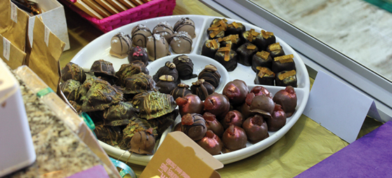 Hvis man ikke selv har lyst til at få fingrene smurt ind i chokolade, kan man i butikken finde et stort udvalg af håndlavet chokolade i sjove design og i mange forskellige smagsvarianter, der er pakket ind og klar til at tage med hjem. Mayan Monkey har alt, hvad hjertet begærer, hvad enten man er til lys, mørk eller hvid chokolade.