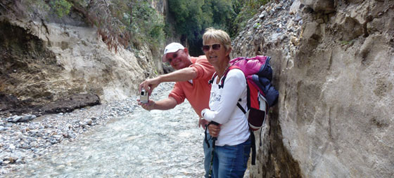 Vi stikker lige næserne ind til det lille picnic sted La Rahige, der ligge smukt ved en kløft lige ved asfaltvejen, og ca. 4 km. længere fremme ser vi på venstre hånd et skilt, hvor der står: Camino del Camping de Sedella. Her skal vi op, og her genser vi vores skiltning. Vejen snor sig op til campingpladsen, men vi går videre op forbi statuen af en grib, og hen til højre. Denne fine sti fører os ned til Sedella, hvor vores bil venter. Gode råd er dyre, hvis man ikke har bil, for den nærmeste overnatningmulighed er i Canillas de Albaida – ca. 18 km. længere fremme. Hvis man tager ruten i ét hug, er dagsmarchen fra Canillas de Aceituno til Canillas de Albaida ca. 25 km. Det kan man godt, hvis man er sej.