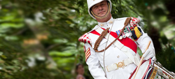 Jeg gik ind i Royal Gibraltar Regiment i 1984 som infanterist. En dag gik jeg og spillede lidt på min vens tromme. En officer hørte mig og fik mig straks ind i trommekorpset. Jeg øver mig normalt et par gange om ugen og især op til jul, når der bliver travlt med parader og koncerter. Heldigvis udviser banken stor forståelse”.