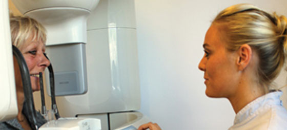 “Den nye 3D-skanner er den bedste vej til planlægning af sikker og forudsigelig kirurgi. På kort tid gives et præcist billede af dit tandsæt og din knogletilstand, så vi med det samme kan stille en nøjagtig diagnose og foreslå en holdbar behandlingsplan med evt. implantater og broer samt give dig et tilbud på en totalløsning”, siger tandlæge Keld Overgaard.