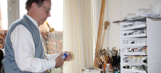 Når det gik godt, var han helt oppe i internationale højder. Men selvom det er blevet trange tider, og huset mindre, kan Jens Ulrich Petersen stadig male og hele huset bugner af flotte billeder.