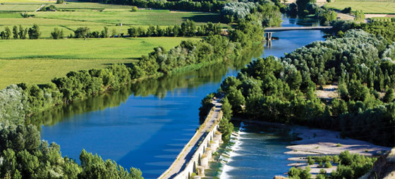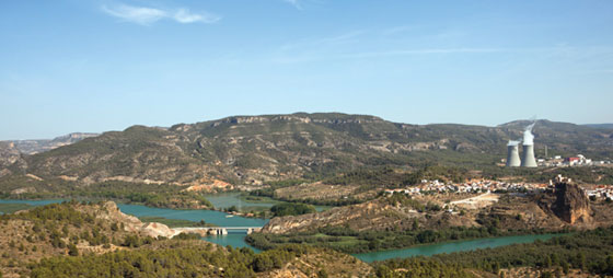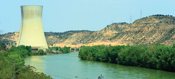 Ebro måler 910 km. Den starter i Pico de los Tres Mares i Cantabrien og har sit udløb i Middelhavet ved Tarragona. Ved Ebro ligger atomkraftværket Ascó, og vandet bruges til at afkøle reaktorerne, hvilket får vandets temperatur til at stige unaturligt højt. Her ser Garoña de Santa María, Spaniens ældste atomkraftværk, der lige nu er lukket, hvilket måske resulterer i en permanet lukning, som ellers var planlagt fra og med juli 2013.