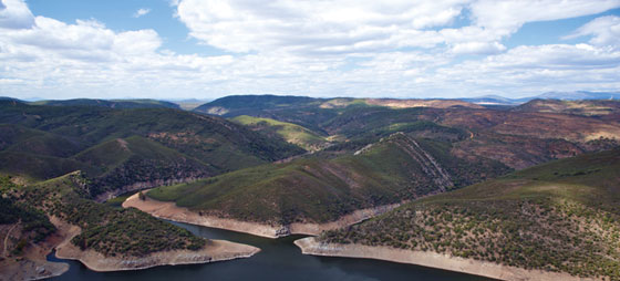 Tajo er med sine 1.007 km den længste flod på den iberiske halvø. Dens kilde hedder Fuente de García, som ligger i Albarracín i Aragonien. Den løber ud i Atlanterhavet ved Lissabon, og portugiserne kalder den Tejo. Ved Tajo ligger atomkraftværket José Cebrera, der er bedre kendt som Zorita, men som dog blev lukket i 2006. På billedet ses Tajo løbe gennem Monfrague-naturparken i Caceres.