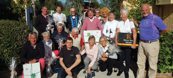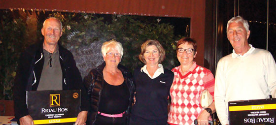 Golf i Solen, som har over 600 medlemmer, spiller ”Scramble Slaget” fire gange om året. Den 11. marts spillede man finale på Santana. Fra venstre ses B-klasses vindere Hallvard og Lilly Trydal. Vindere i A-klassen ses til højre Terje Jensen og Marie Austvoll. I midten ses matchens sponsor Siw Madsen Mosegaard fra Nykredit.