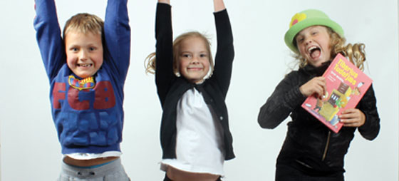 Snakken falder hurtigt på den lille, lyshårede dreng, der elsker pandekager. Cecilia, 8 og søskendeparret Mads, 8 og Signe, 9 er vilde med bøgerne.