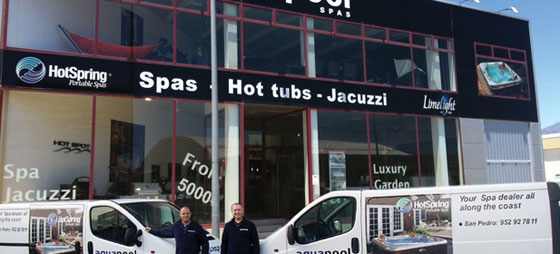 Aquapool Spas har været en succesfuld partner for Hot Spring gennem mange år. Selvom Spanien har været ramt af dyb økonomisk krise de senere år, har Anja og Claus formået at vækste deres forretning med mere end 35% med hensyn til antal solgte enheder sidste år – et meget imponerende resultat.
