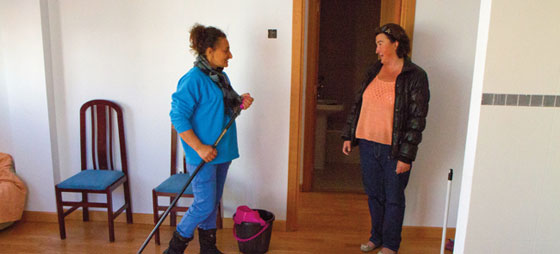 De drømmer om lejeaftaler, som gør, at de kan fortsætte med at bo i boligblokken under rimelige og ordentlige forhold, Julia (t.v.) og psykolog Teresa Pinazofor.