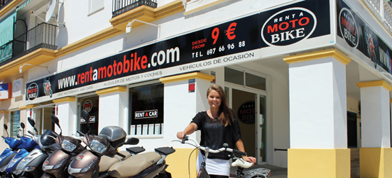 Hos Rent a MotoBike kan man dog også leje biler, motorcykler og scootere.Det danskejede firma i Torre del Mar har specialiseret sig i god, nærværende service og lave priser. ”De fleste skandinaver, der kommer til kysten, lejer bil i lufthavnen, men ofte tager halvanden time fra det øjeblik, man lander til man sidder i sin bil. Her er vi et godt alternativ for folk, der skal øst for Málaga. Man tager blot lufthavnsbussen til Torre del Mar og så ligger vi lige ovre på den anden side af busstationen. Derfra har man sin bil på fem minutter”, lover Frank Jensen, som ejer Rent a Motobike. Han tilbyder faste, lave priser, hele året, og skulle man få problemer med sit køretøj, løses sagen hurtigt af. Bilerne udlejes på dags- og ugebasis og hvis man ønsker en bil for en måned, kan det gøres for kun 300 euro, alt inklusiv. Franks datter Josephine har sin faste gang i butikken. Hun melder om et større behov for at leje cykler, motorcykler og scootere. ”Flere ønsker et let, hurtigt og billigt køretøj for at komme rundt i byen, til stranden eller en tur ind i landet. Vi har cykler til 7 euro og scootere til 25 euro pr. dag og det bliver mere og mere populært, både blandt turister og skandinaver, som bor her i vinterhalvåret”.Store motorcykler finder man også hos Rent a Motobike og det skyldes nok Frank Jensens store lidenskab herfor. ”Andalusien er Europas bedste destination for motorcykelture. Hvert år arrangerer jeg ture for motorcykelentusiaster og rejser ofte selv med rundt i landet. Så uanset om man ønsker en større tur rundt i Andalusien eller en lille tur på en bycykel, så klarer vi det”, slutter Frank Jensen.