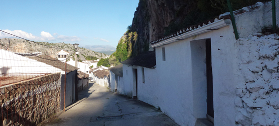 For enden af gaden starter grusvejen imod Líbar sletten, og her møder vi også et GR 7 skilt. Det er ad GR 7, at de mange vandreturister kommer gående, og Montejaque ligger en passende dagsmarch (ca. 20 km) fra det sidste overnatningssted i Cortes de la Frontera.