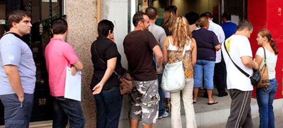 Det tynder lidt ud i køen til jobcentret, Oficina de Empleo.