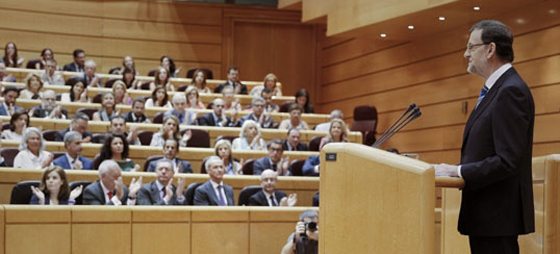 Statsministeren modtager applauser fra sine partimedlemmer, men ikke fra størstedelen af den spanske befolkning.