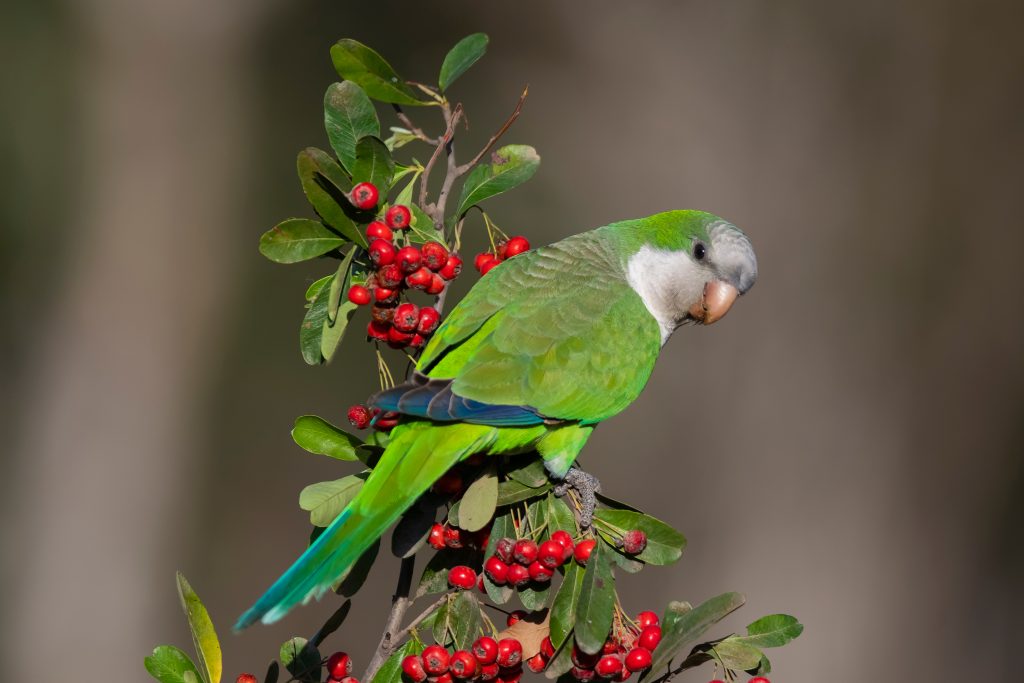 Vi taler selvfølgelig om munkeparakitten (Latin, Myiopsitta monachus), en fugl som er til stor ærgrelse for nogen og til glæde for mange. Munkeparakitten stammer oprindeligt fra Sydamerika, nærmere bestemt de sydlige dele af Argentina, Brasilien, Bolivia, Paraguay og Uruguay. Her anses arten som almindelig, og de kan ofte ses i selskab med andre papegøjer og fuglearter. Det er den eneste papegøjeart, som bygger en egentlig rede af grene og kviste, i modsætning til andre papegøjer som hakker i hule stammer, hvor de lægger sine æg direkte på bunden, måske bare med lidt græs for at forhindre at æggene triller rundt og knuses. Munkeparakitten ruger i store kolonier, og nogle gange bygger kolonierne store, fælles reder, som kan nå en anselig størrelse.