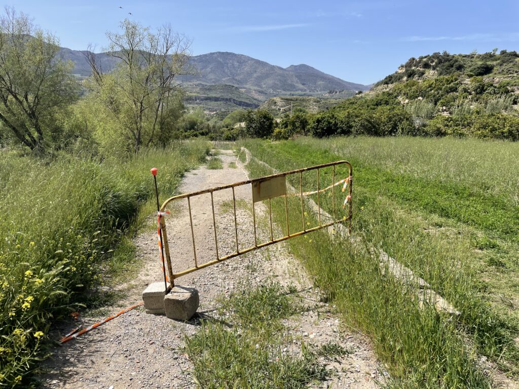 Man krydser først en lille hurtigtløbende bæk, Rio Torrente, og efter et par km. krydser vi floden Durcal på en bro. Denne flod fodrer Beznar reservoiret, som vi senere kommer forbi.  Her skifter ruten retning mod venstre og vi følger nu floden et stykke vej. Floden bruser, bierne summer, appelsintræerne dufter, solen skinner, alt er grønt og frodigt og alt ånder fred og ro. Det er en skøn rute vi er ude på og ret forude har vi byen Restábal.