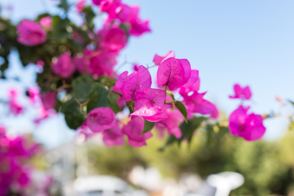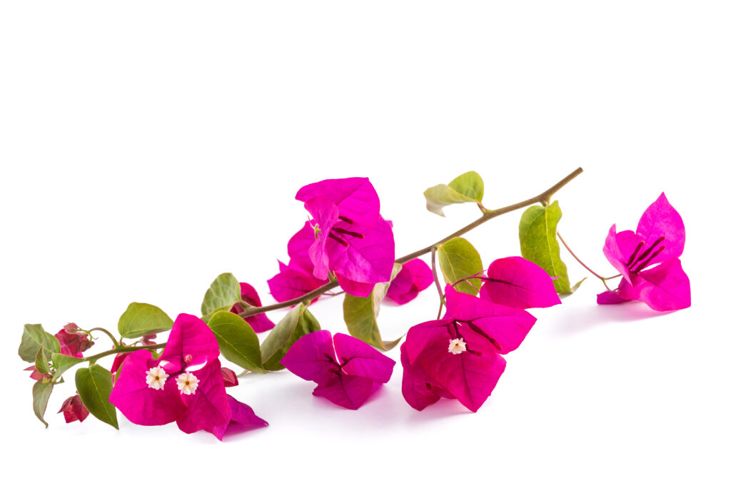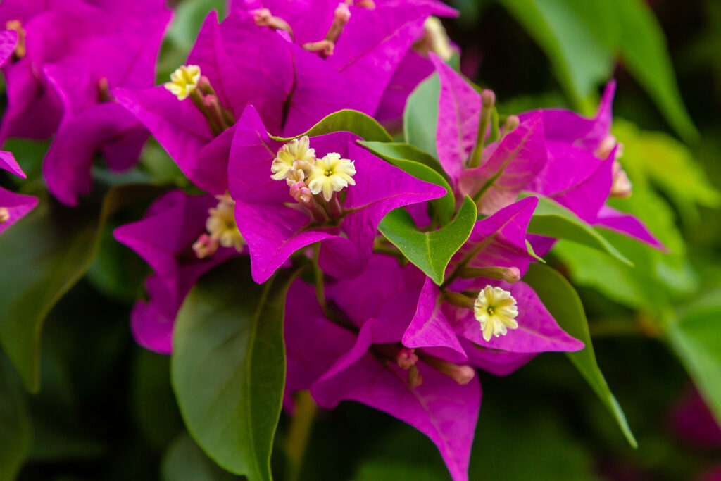 Overraskende nok har bougainvillea små, ufølsomme blomster. Det er de tynde, papiragtige blade lige bag disse små rørformede hvide blomster, der gør denne plante så smuk. De kan være alt fra hvid og beige, til gul og orange til højrød, lilla og violet. Under optimale forhold kan en busk blomstre mere eller mindre hele året rundt. Den er stort set insektfri, elsker solen og varmen og er tilfreds med begrænsede mængder vand. Læn dig tilbage under din pergola, nyd tomaterne og nyd udsigten. Tænk på den glæde, Louis-Antoine de Bougainville og ikke mindst botanikeren Philibert Commercon må have følt, da de fandt deres brasilianske skønhed. Vi håber for Commercons skyld, at det skete, efter at hans tjener blev afsløret som hans elskerinde, så han i fuld åbenhed kunne dele denne lykke, han helt sikkert følte med den, der var tæt på hans hjerte…