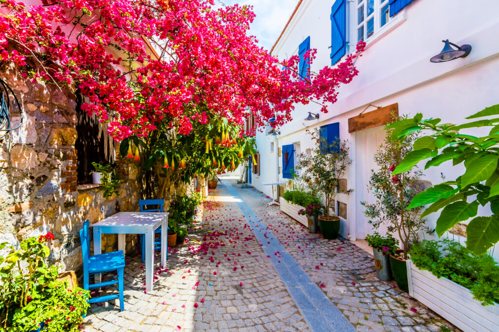 Sjældent tænker vi på Louis-Antoine de Bougainville, franskmanden, der gav navnet til den eksotiske, næsten altid blomstrende busk, der omkranser et delvist blegt og farveløst Middelhavslandskab i et guddommeligt slør af enhver tænkelig nuance af lyserød til violet. Den omgiver terrassen og reflekterer i poolen, den hænger på trappen og står på bordet, den bor i krukker og bede, langs fortove og stier, og vi holder aldrig op med at blive fascineret af denne spektakulære vækst, der kræver så lidt og giver så meget.
